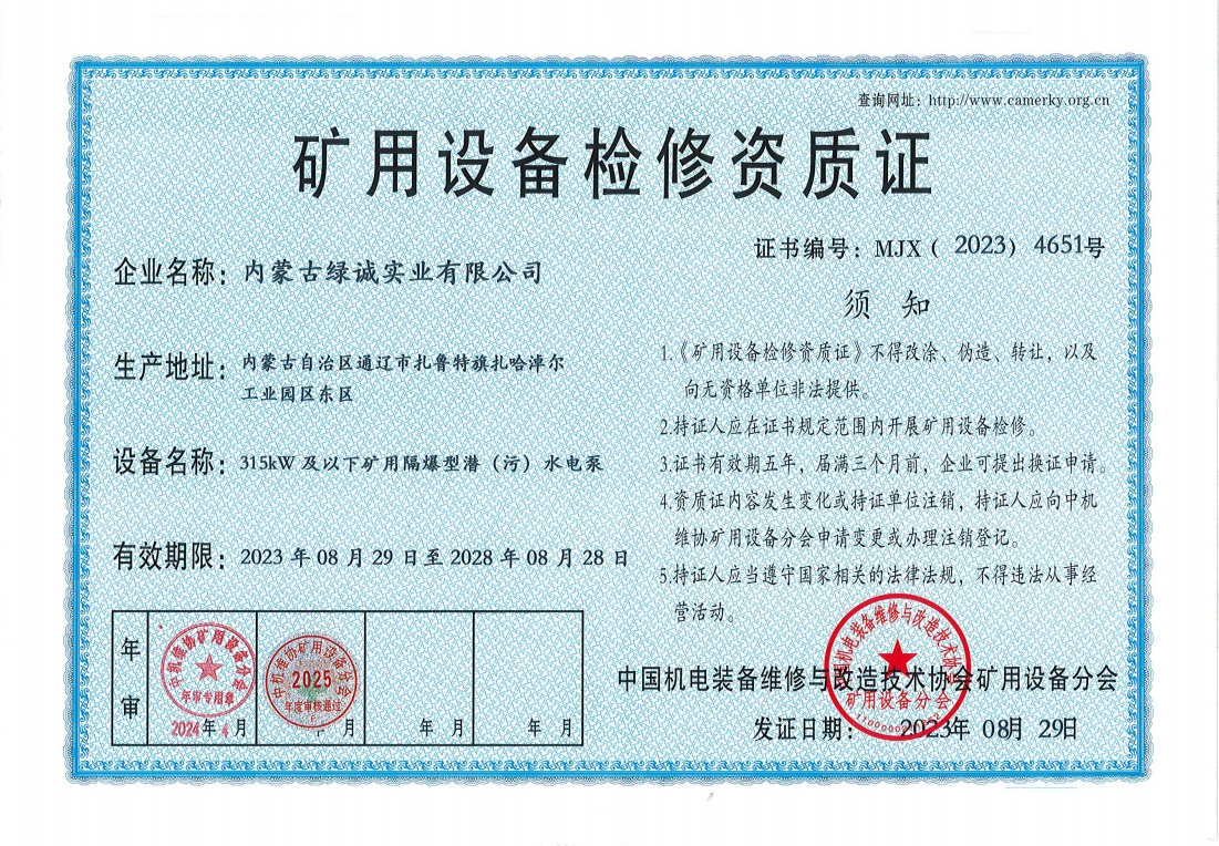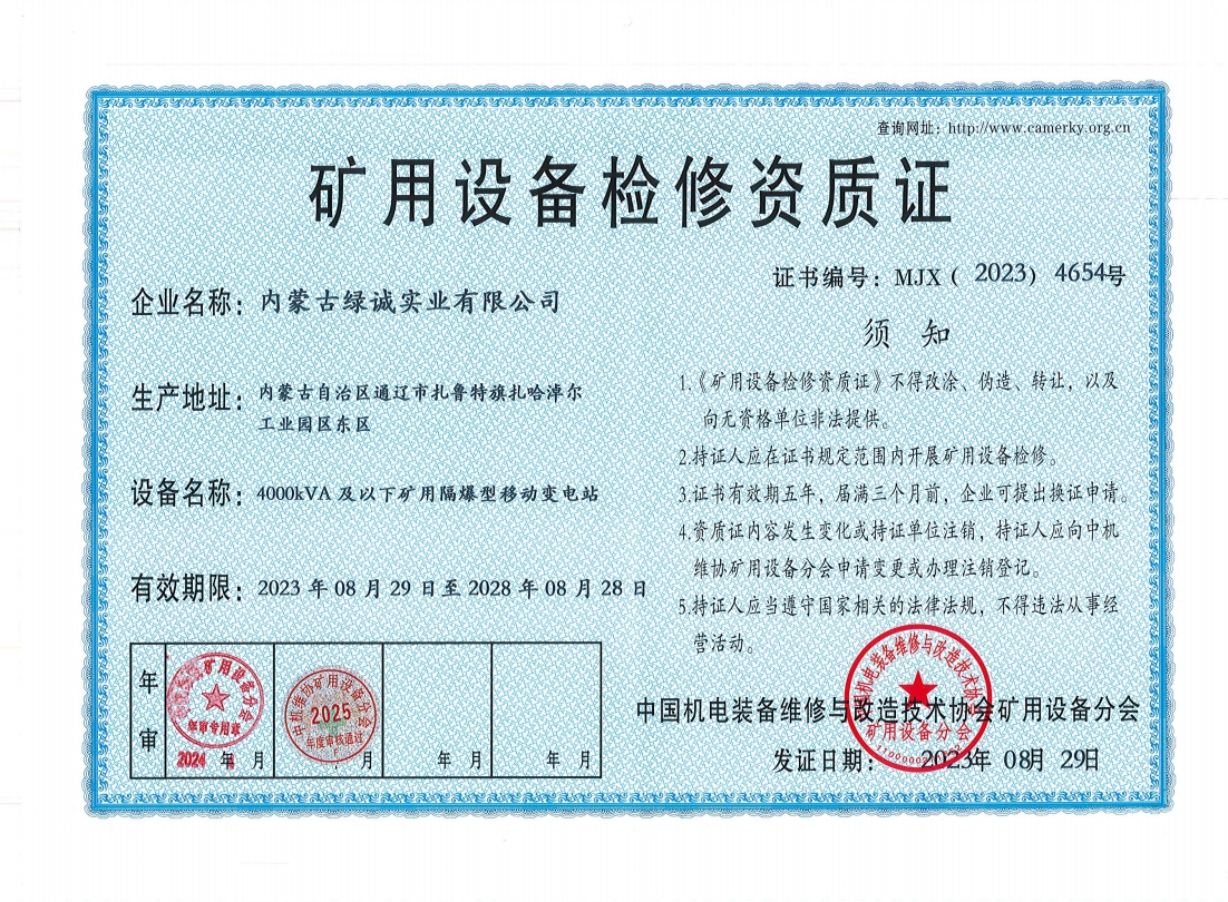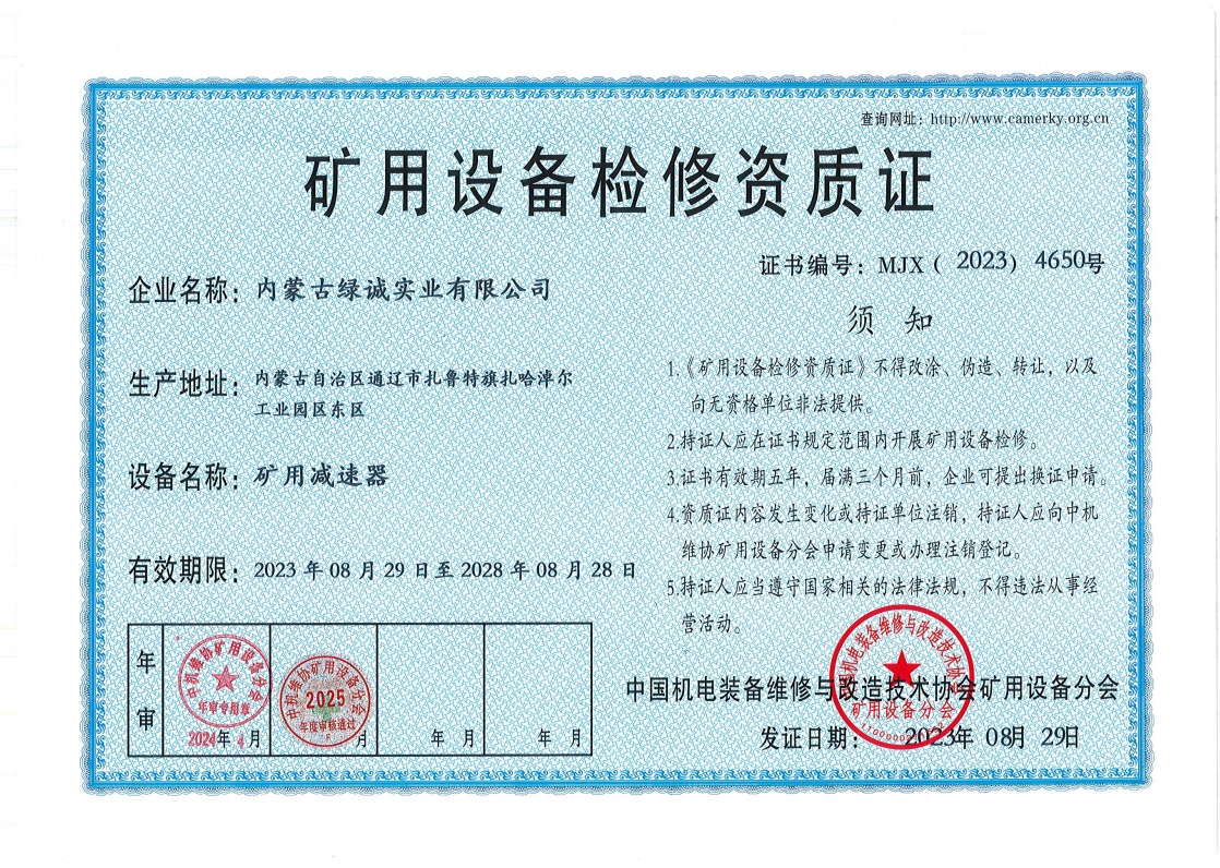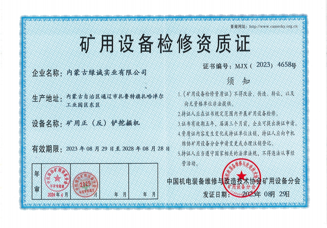 2018年我公司通過中國機電裝備維修與改造技術協(xié)會礦用設備分會審核并取得了9項礦用設備檢修資質證書。公司本著“誠信為本 質量為先 全心全意為客戶 ”的服務理念,圓滿完成各個廠礦的機械維修及配套服務,期待與您共同合作。