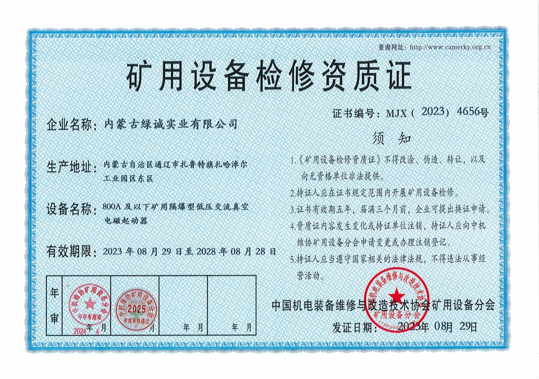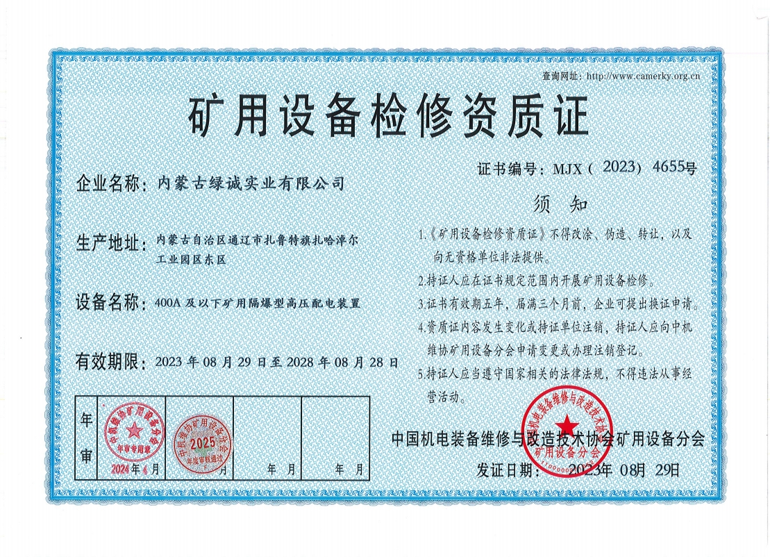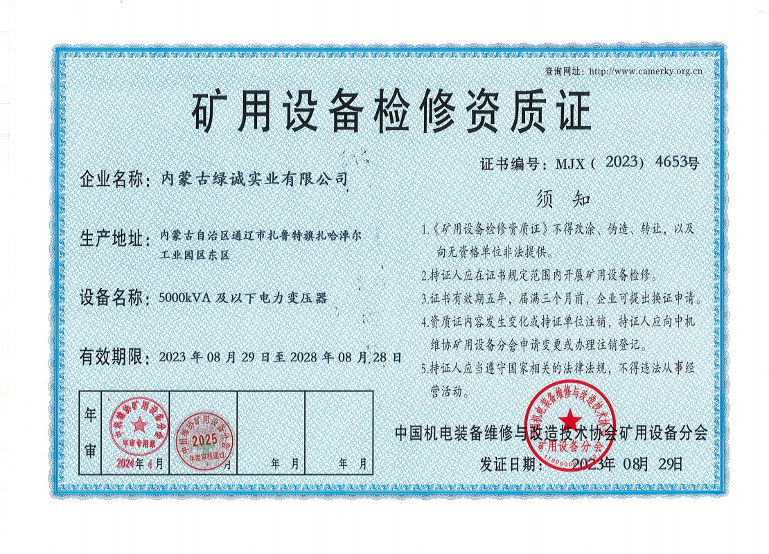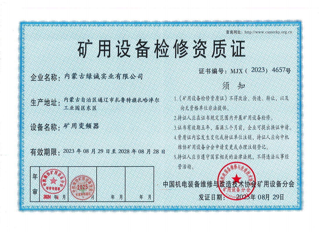2018年我公司通過中國機電裝備維修與改造技術協(xié)會礦用設備分會審核并取得了9項礦用設備檢修資質證書。公司本著“誠信為本 質量為先 全心全意為客戶 ”的服務理念,圓滿完成各個廠礦的機械維修及配套服務,期待與您共同合作。